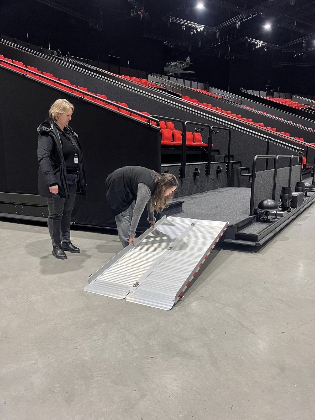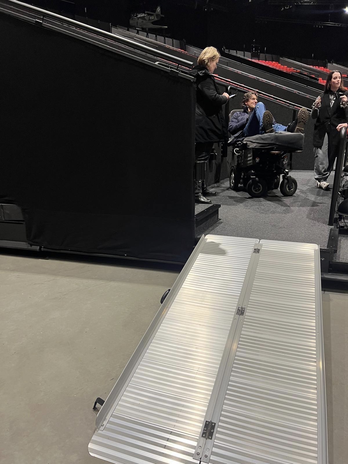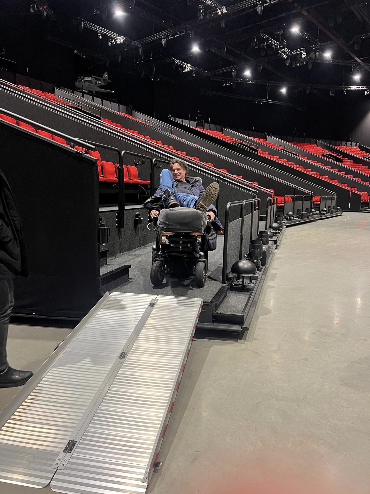 Tijdens het bezoek viel daarnaast de uitgebreide begeleiding door kundig personeel en vrijwilligers positief op. De musical vindt plaats in een grote zaal naast de ontvangsthal; de route tussen deze ruimtes is niet overdekt. Eenmaal aangekomen in de musicalhal worden bezoekers begeleid naar de rolstoeltoegankelijke tribune. Omdat alle tribunes tijdens de voorstelling bewegen, is er geen vaste oprijplaat aanwezig. In plaats daarvan wordt vooraf een losse oprijplaat geplaatst, zodat rolstoelgebruikers veilig naar hun plaatsen kunnen rijden.